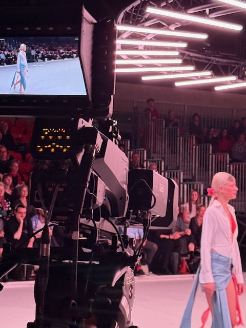 Le dispositif reposait sur une captation vidéo articulée autour de plusieurs points de vue complémentaires. Caméras plateau et tourelles motorisées permettaient de suivre les silhouettes, les mouvements et les détails des créations, sans perturber le déroulé du défilé ni l’attention du public présent.